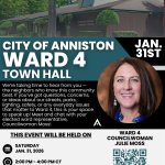 9:00 am - 11:00 amAnnual Martin Luther King Jr. Breakfast & Youth Participation Day! Anniston City Meeting Center 3:30 pm - 6:30 pmGymnastics at Carver! Carver Community Center 5:30 pm - 6:15 pmSteppin’ Out Dance Fitness! Norwood Hodges Community Center 5:30 pm - 7:30 pmSouthern Spinners Baton! Norwood Hodges Community Center Events for January 20th 5:00 pm - 7:00 pmFree Play at the Carver Community Center! Carver Community Center 5:30 pm - 6:15 pmSteppin’ Out Dance Fitness! Norwood Hodges Community Center Events for January 21st 3:30 pm - 6:30 pmGymnastics at Carver! Carver Community Center Events for January 22nd 5:00 pm - 7:00 pmFree Play at the Carver Community Center! Carver Community Center 5:30 pm - 6:15 pmSteppin’ Out Dance Fitness! Norwood Hodges Community Center Events for January 23rdNo EventsEvents for January 24thNo EventsEvents for January 25thNo Events2627282930311 Events for January 26th 3:30 pm - 6:30 pmGymnastics at Carver! Carver Community Center 5:30 pm - 6:15 pmSteppin’ Out Dance Fitness! Norwood Hodges Community Center 5:30 pm - 7:30 pmSouthern Spinners Baton! Norwood Hodges Community Center Events for January 27th 5:00 pm - 7:00 pmFree Play at the Carver Community Center! Carver Community Center 5:30 pm - 6:15 pmSteppin’ Out Dance Fitness! Norwood Hodges Community Center Events for January 28th 3:30 pm - 6:30 pmGymnastics at Carver! Carver Community Center Events for January 29th 5:00 pm - 7:00 pmFree Play at the Carver Community Center! Carver Community Center 5:30 pm - 6:15 pmSteppin’ Out Dance Fitness! Norwood Hodges Community Center Events for January 30thNo EventsEvents for January 31st 2:00 pm - 4:00 pmWard 4 Town Hall (01/31/26) Norwood Hodges Community Center VIEW ALL EVENTS