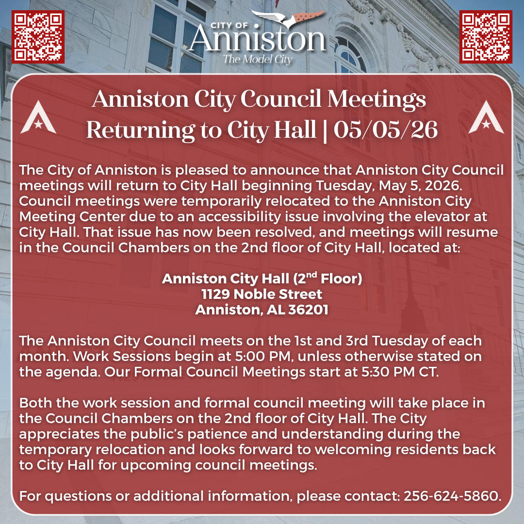 5:00 pm - 7:00 pmFree Play at the Carver Community Center! Carver Community Center 5:30 pm - 6:15 pmSteppin’ Out Dance Fitness! Norwood Hodges Community Center Events for May 2nd 8:00 am - 12:00 pmAnniston Downtown Market 2026 The City Market