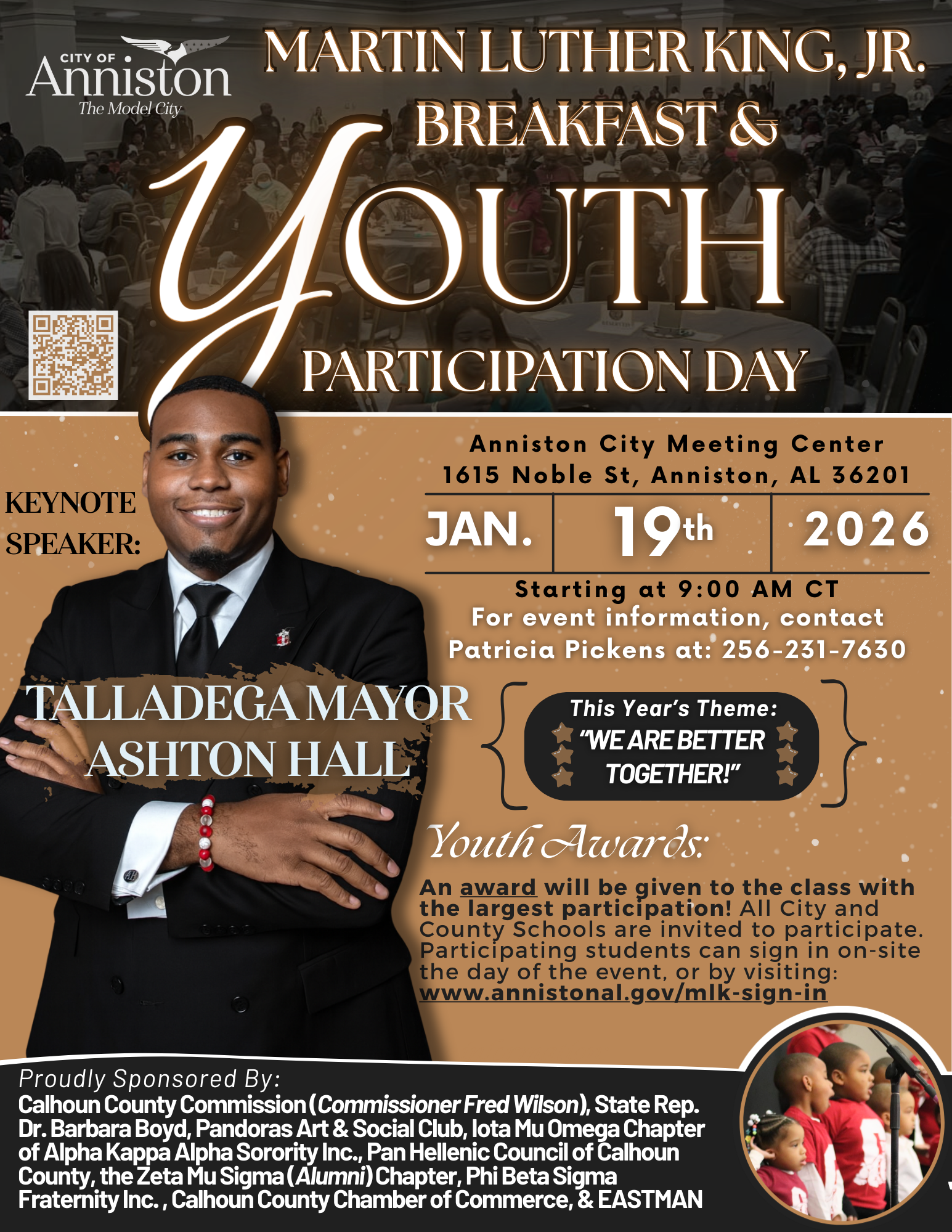 The City of Anniston, Alabama proudly invites the community to our Annual Martin Luther King, Jr. Breakfast & Youth Participation Day!
